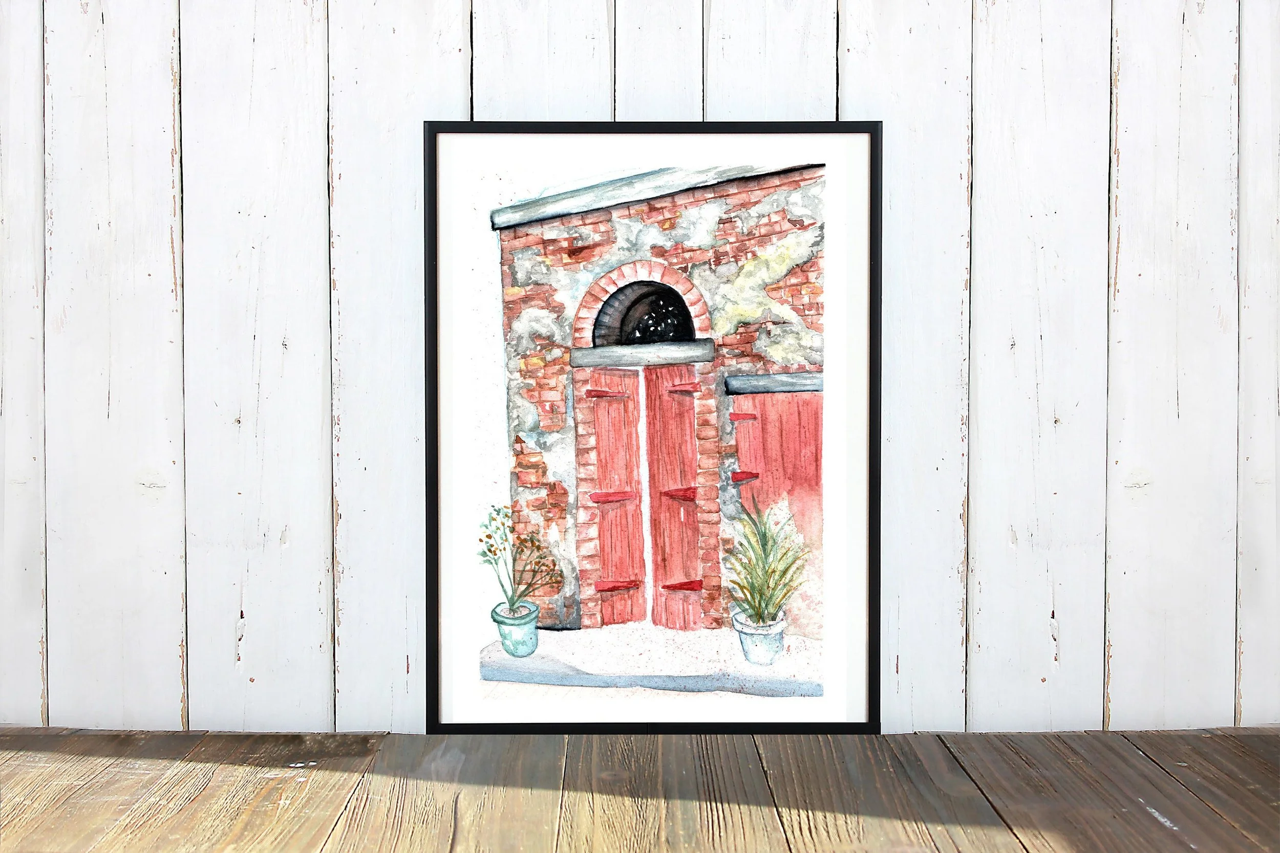 Original watercolor painting created by the artist! This vintage historic doorway print is on matte fine paper (~ 60lb depending on size) perfect for almost any historic or antique style decor. Does not include the decor or frame in the images.